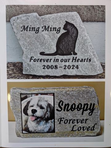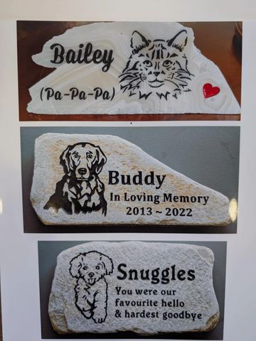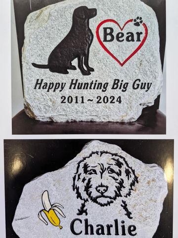 Perfect for the garden or patio.These beautiful stones come in a variety of shapes and sizes. Customize with names, pictures, font and stock images. Inquire for an accurate price depending on your choices.