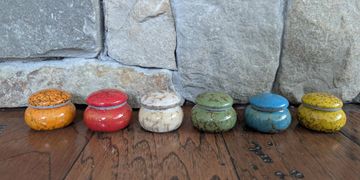 Tiny colorful urns. Perfect for small pets such as birds, rodents, lizards, snakes, or baby animals.